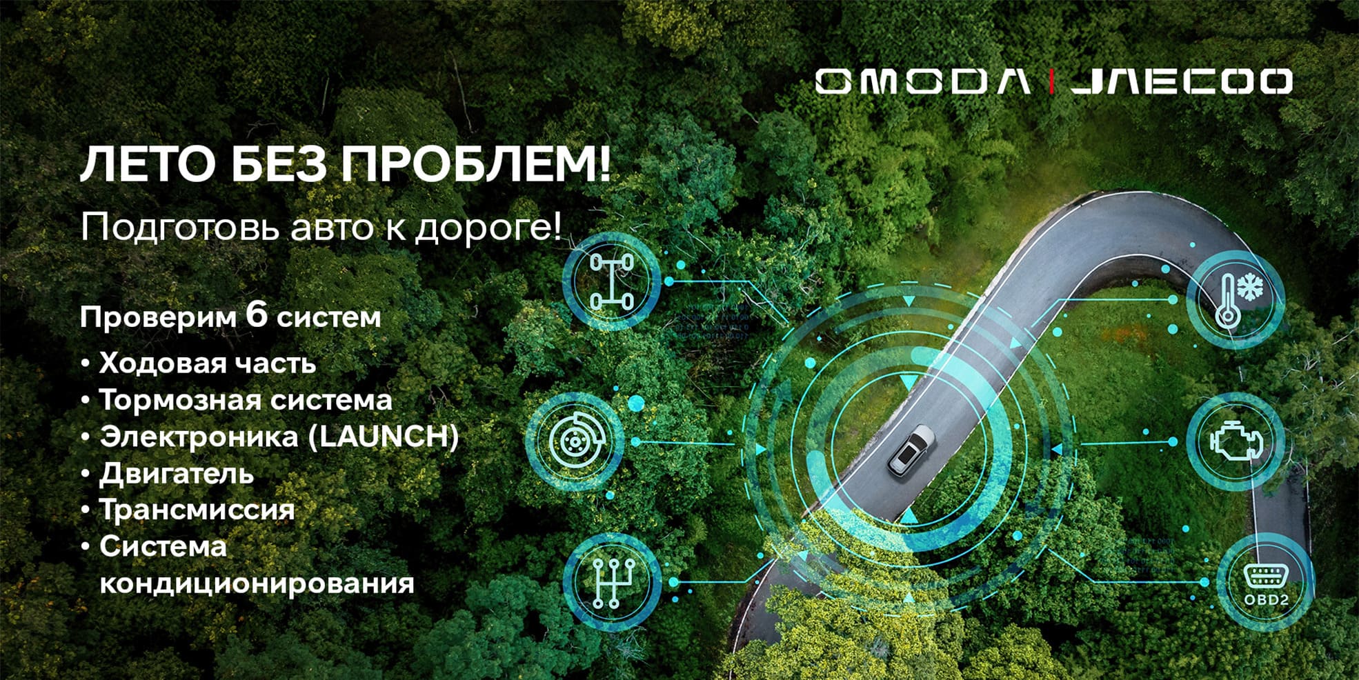 До конца августа действует специальное предложение для владельцев автомобилей OMODA — комплексная диагностика* перед летним путешествием.